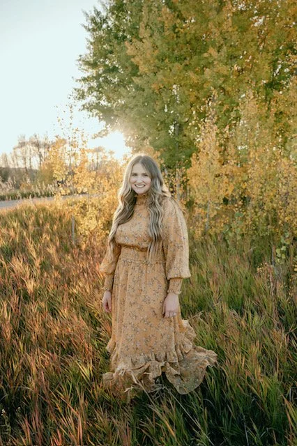 Photo of Alexy Nelson, a registered dietician, in a natural field.